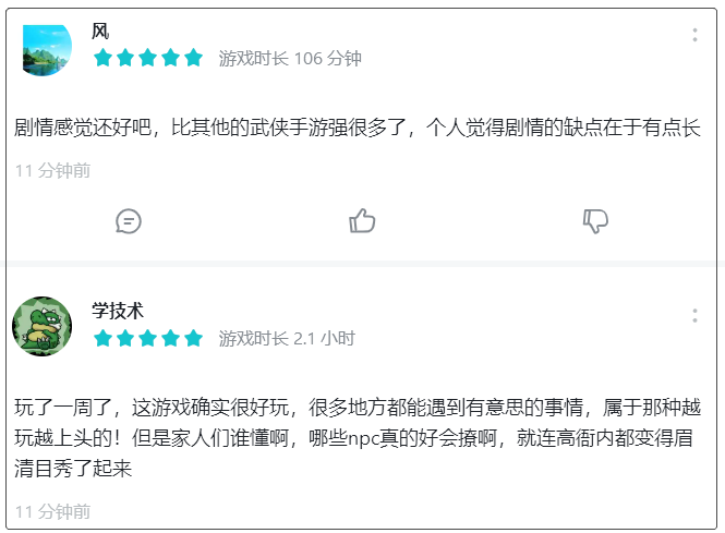 但是如今游戏上线二周,淘掉了一些看热闹的玩家,而留下来的人却给出了正面评价:“这游戏属于越玩越上头的那种,一旦玩进去了就停不下来。”