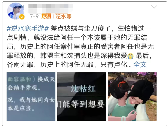另外一个备受赞誉的就是剧情,端游本来就有不少出色的剧情,像“一生一世一双人”“岁月神偷”等,部分移植到手游中依然让玩家感动暴哭。
