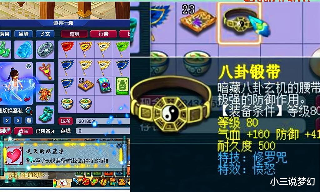 这两个蓝字效果就是愤怒和修罗咒,如果这还是梦幻西游的早期,还是全血地府比较活跃的时代的话,修罗咒将会成为全血地府的一个神器,这就相当于一个能够百分百反震的特技,但是现在的修罗咒就没有用了,上面的这条腰带只能够当成一条愤怒来对待。