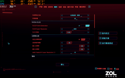 最后测试了《赛博朋克2077》,将画质设置为光线追踪:超级,DLSS3自动,最终测试得到平均61.74帧,可以流畅运行了。对于《赛博朋克2077》来说,这样的成绩也相当给力。
