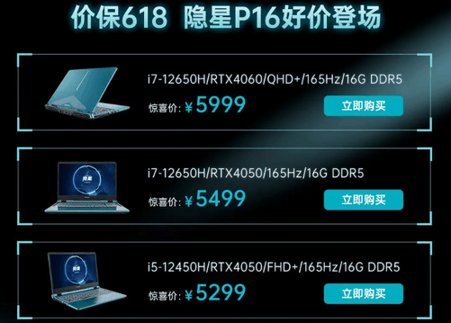 在618期间,七彩虹隐星系列推出了一个非常犀利的价格,i7-12650H/RTX4060,仅5999元,如果是游戏轻度玩家或者网友玩家还有i5-12450H/RTX4050可选,售价更是来到了5299元。