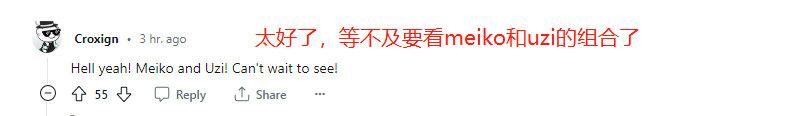 “太好了,等不及要看Meiko和Uzi的组合了”