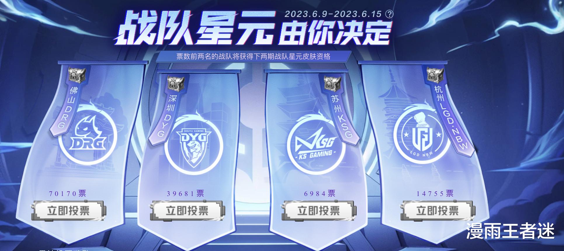 而且值得一提的是,DRG夏季赛刚开放佛山主场场馆,KPL联盟又立马再次开启战队星元皮肤投票。此次参与投票的队伍一共有4支,分别是DRG、DYG、KSG、LGD大鹅。DRG或许人气比不上AG超玩会等队伍,但相比于其他三支,还是够打得。这不,截止至发文,DRG已经来到了7万,比第2名的DRG足足多了3万票,基本上悬念已经没有了。