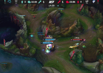 [18:49]蔚中路锁头安妮,安妮交出闪现到野区,TT只能放弃,狐狸带掉UP上路一塔。