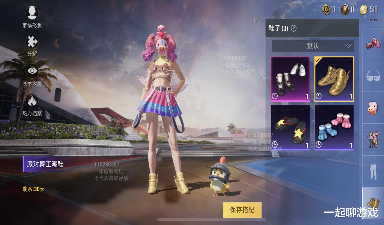 如图所示,这是天哥在体验服测试新版本时留下来的游戏截图,原本“一体”的猪妹,可以使用派对舞王的鞋子了。