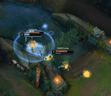 [3:15]蔚中路gank但是被波比在河道壁咚,妮蔻过来跟上输出帮助波比拿到蔚的一血。