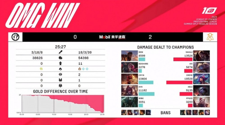 第一局:shanji酒桶冲击打爆WeniG中野毫无联动惨遭零封OMG先下一城