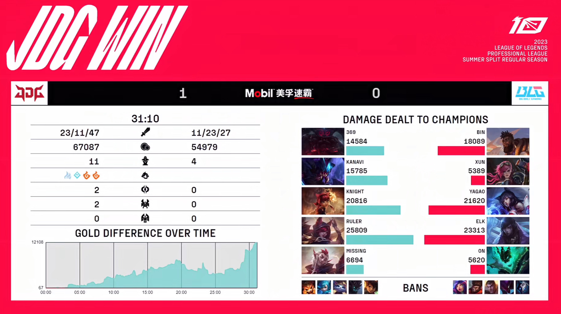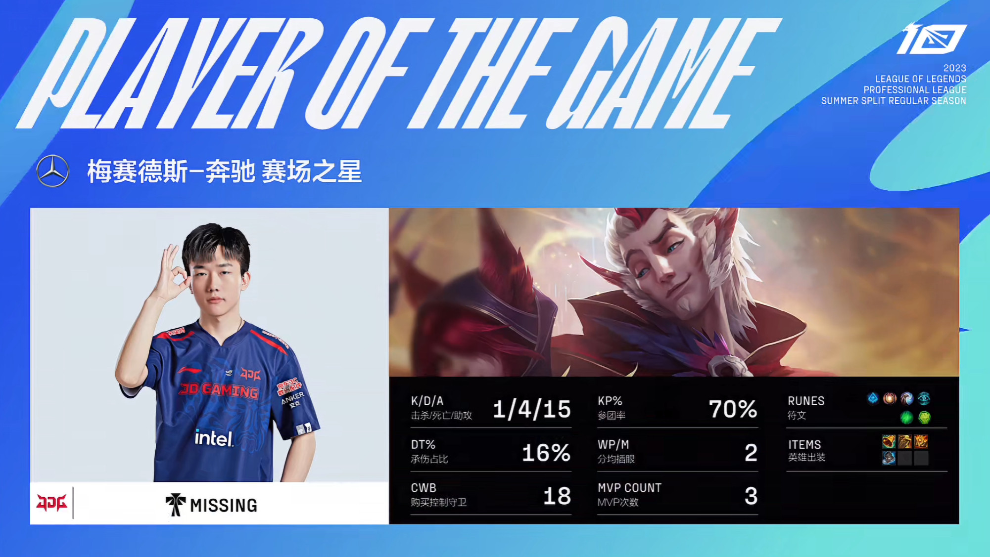 还真就打不了一点,六连胜的BLG看起来像玩具,下路早早被爆,Bin尽大力,MISSING应该是对位MVP了,一比零