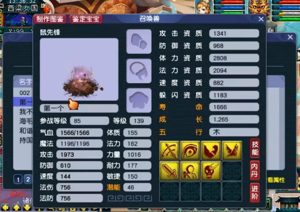 除了网红老鼠之外,芙蓉仙子也是当年比较热门的抓鬼宝宝,技能数量基本与老鼠一样。如今配置了一只技能达到6个的芙蓉仙子,看见了高级驱鬼以及高级飞行就知道是抓鬼专用宠,攻击也达到了1500+。