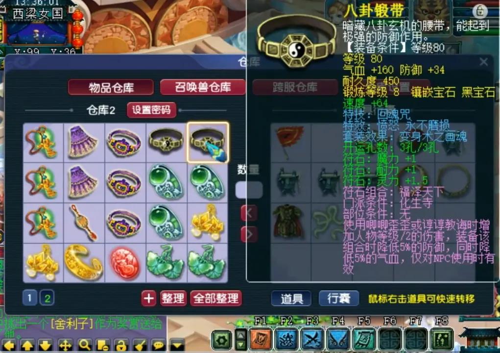 还有两件80级非人造装备,附加逆天三蓝字的腰带,第一件附加了四海升平特技,同时附加了永不磨损与暴怒特效。第二件附加了回魂咒特技,附加永不磨损与愤怒特效。