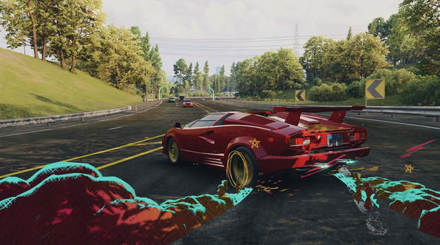 为了突显出主人翁赛车的重要性,此次游戏制作组特意打造出了许多形象逼真的街道和各种炫酷的车辆。此外,我们也能从游戏中看到了不少“二次元”的涂鸦元素。这也是游戏制作组的心血。不过,最令人印象深刻的是画面由3D切换为2D的过程,看了十分震撼。