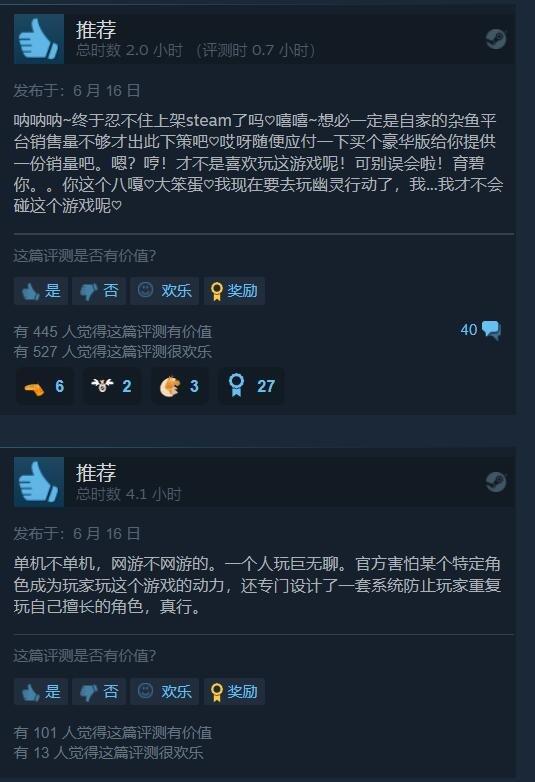 然而,本作的Steam评价中充满了对育碧限时独占行为的吐槽。而服务器的不稳定也是众多玩家们所给出差评的原因。仅仅很少一部分玩家是感觉游戏内容不满意给出差评的。