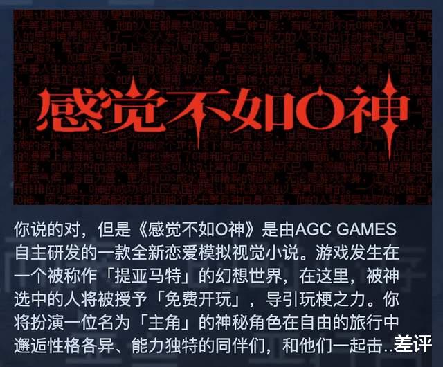 6 月初,一款名为《 感觉不如 O 神 》的游戏在 steam 创建了商店页面。