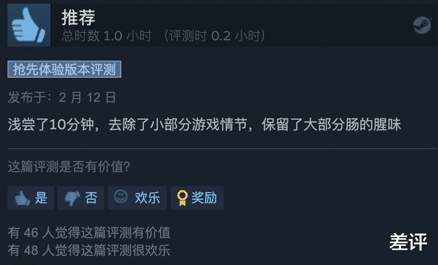 从它正式在 steam 上发售的那一刻起,它就成了玩家眼中的“ 国产之胱 ”。评论区里玩家们无论是好评还是差评,基本上都是拐着弯表达对游戏的不满。
