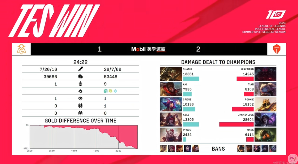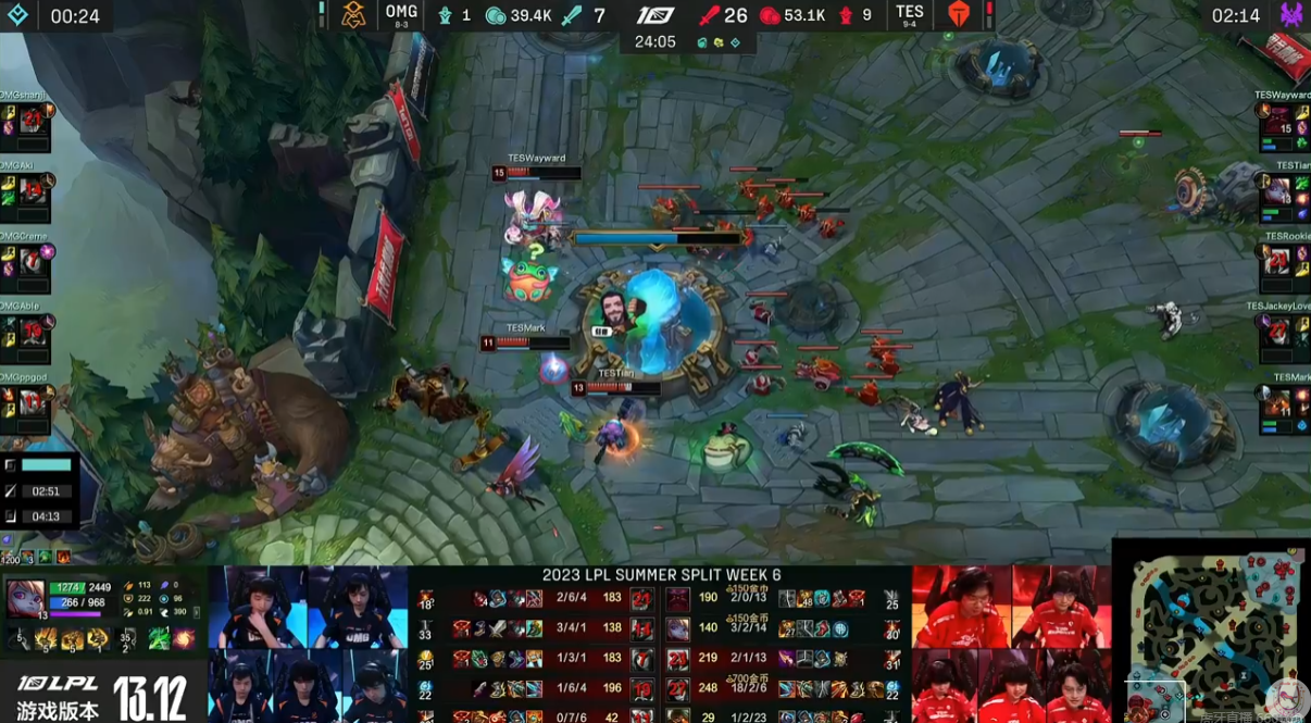 24分钟TES碾压OMG以2-1获胜,由于双方存在第六赢第七的梗,TES也是早就等着复仇的这一天了。野辅也是直接在OMG泉水门口不推基地,疯狂亮起了弱爆和问号。
