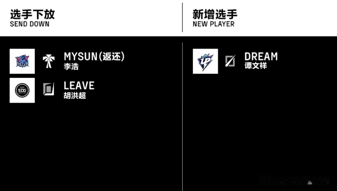 LPL官方在10号比赛前官宣了选手的变动,其中leave被EDG下放至LDL联赛,UP则是新增中单选手Dream。