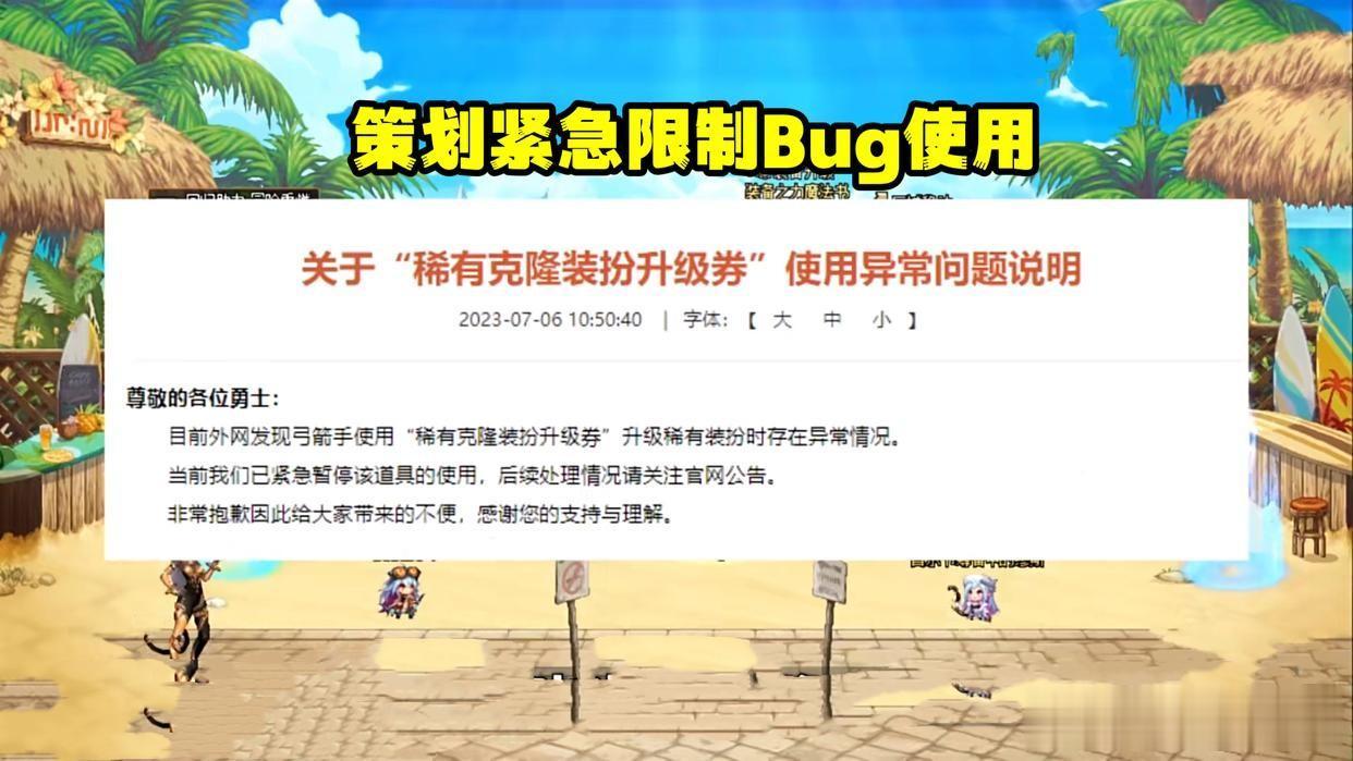 Bug出现后3个小时,策划紧急限制了该道具的使用,然后,在7月20日版本,给出了解决补偿方案。