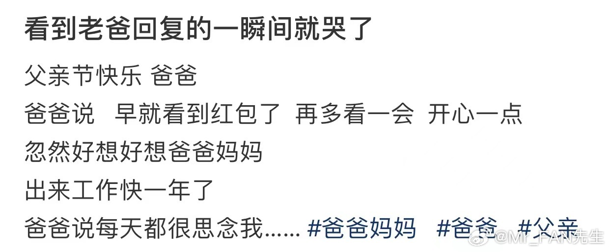 看到老爸回复的一瞬间就哭了