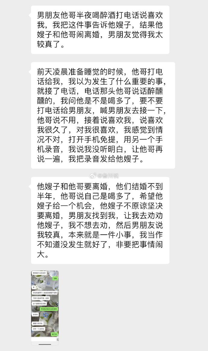 男朋友他哥喝醉酒说喜欢我,我把这件事告诉他嫂子,男朋友觉得我太较真了…