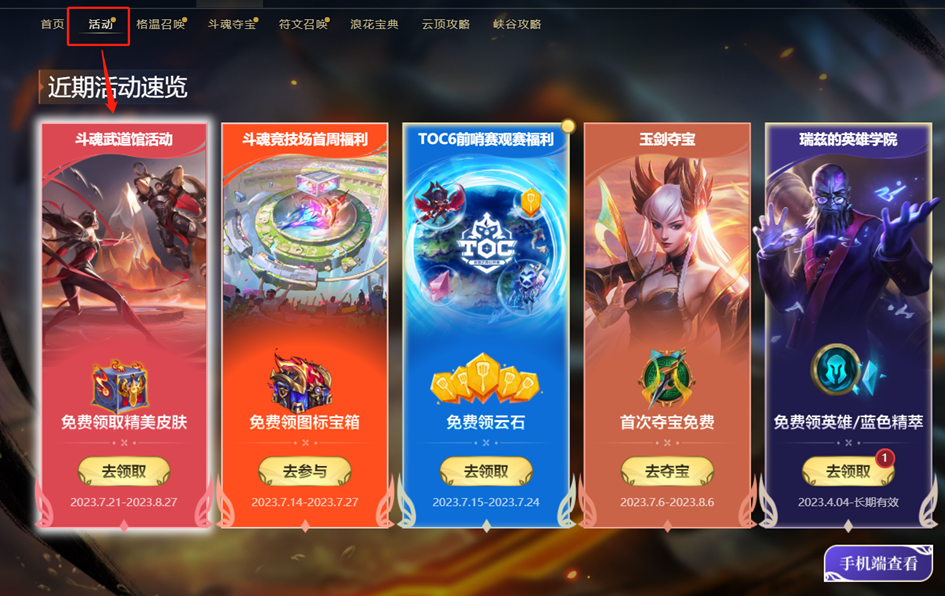这个活动最多可是能获得6款皮肤!而要想开启道具礼盒,则是需要一定量的积分,而积分则是需要通过参与斗魂竞技场胜利,或者完成每周的任务,以及解锁道馆的成就书(达到特定的要求),接下来我们要做的就是不断地开启对局,赢得比赛!