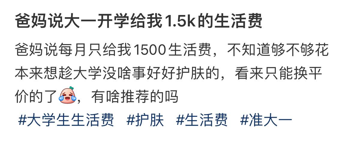 爸妈说大一开学给我1.5k的生活费