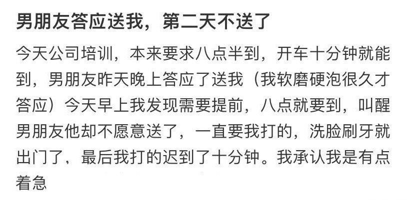 男朋友答应送我,第二天不送了