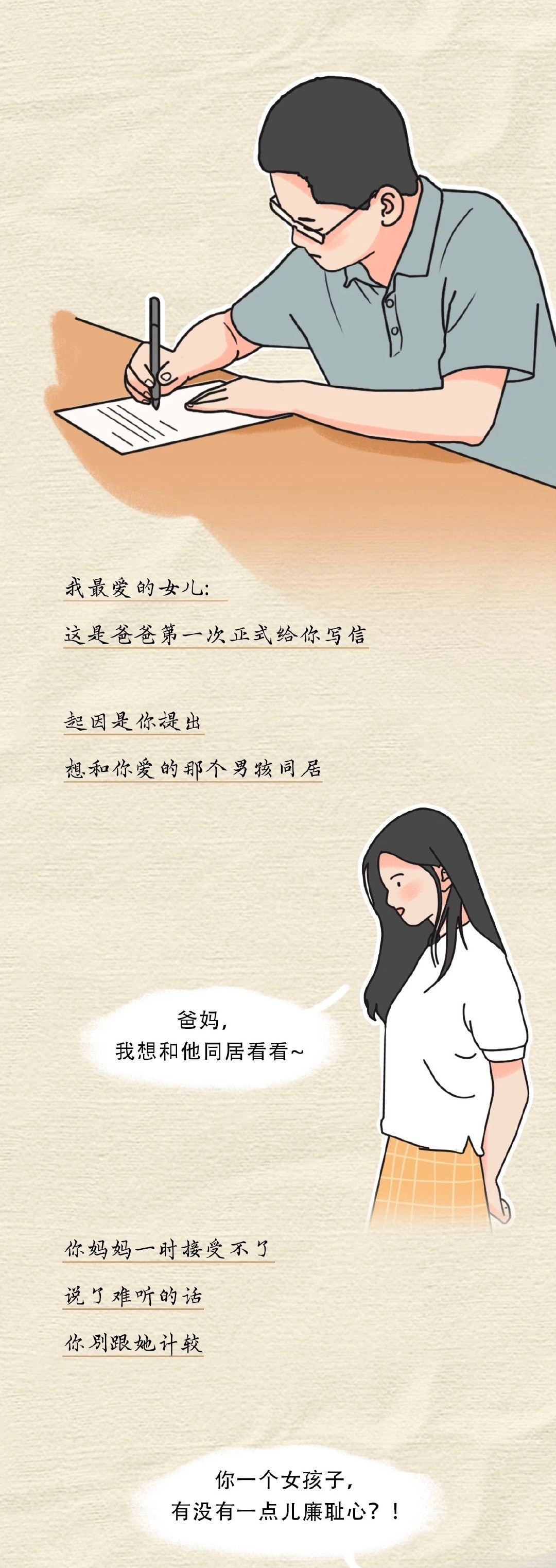 女儿第一次跟男朋友同居,被爸爸发现了。爸爸写了封信,看哭了。