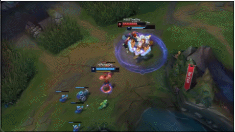 然后中路小虎来了一波精彩的绕后先手金克丝击杀,The Shy侧翼直接孤军深入,进入对方人群中送掉自己的人头,这种对自己过于自信的脱节失误在The Shy奎桑提身上屡见不鲜,这局比赛WBG优势局面下The Shy前中期拖后腿,Light中期失误送大龙,好在小虎是连续绕后帮助队伍赢下来了。