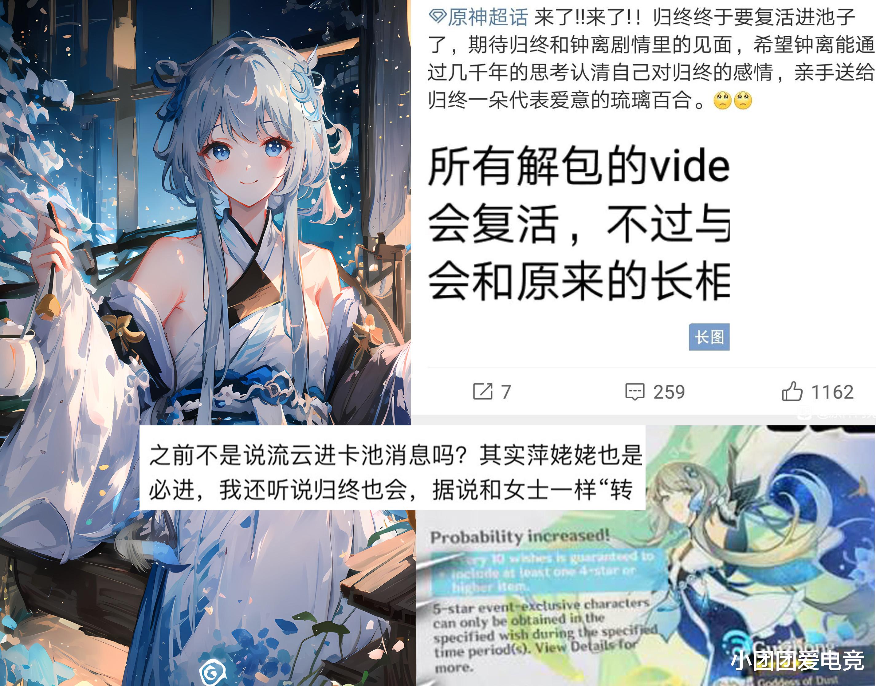 自从多位舅舅证实了归终会进池的消息之后,在各大论坛上也是引起了比较大的争议,其实这也是意料之中的,昨天超话连踢了3个帖子,后来主持人说不准发内鬼的消息才停下来,评论区公钟,归离,单推人三方大混战!不过舅舅也说了萍姥姥会变成年轻时期的样子进池!复合怕不是萍姥姥拉着归终去ml?如此一来,貌似和钟离也没太大关系吧?大家觉得呢?