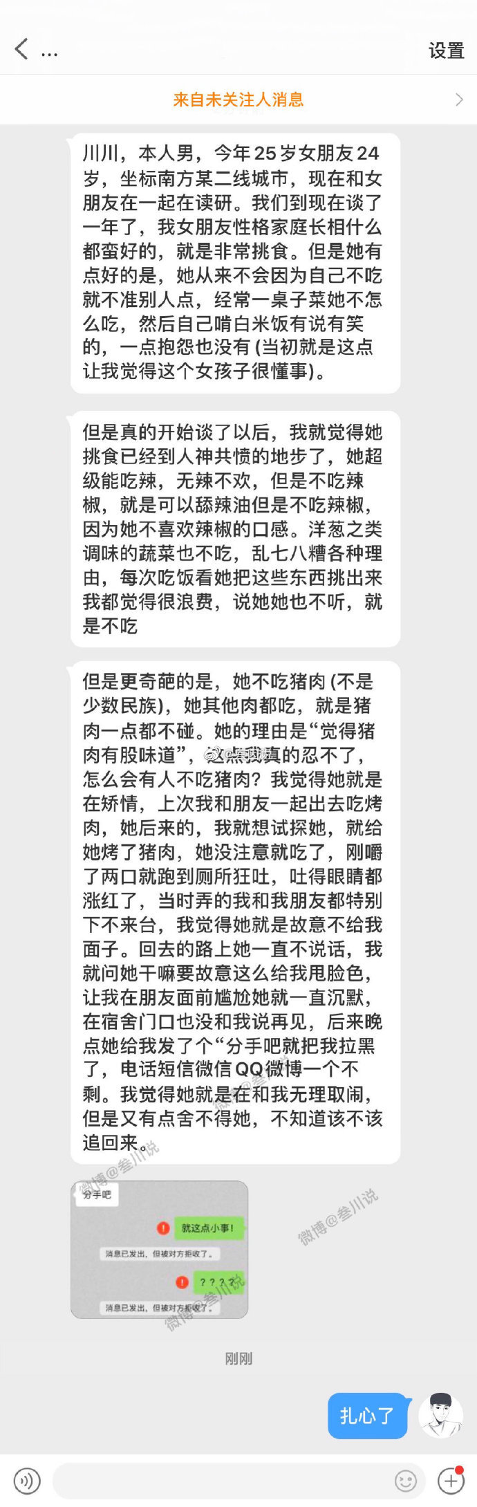 因为给女朋友吃了一块猪肉,女朋友便和我分手,并且把我联系方式全部拉黑了!#公益救援在行动##瞬间#