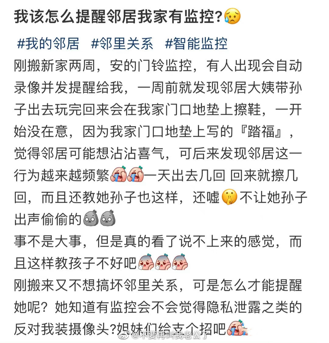 我该怎么提醒邻居我家有监控?看完之后,你们有什么好办法