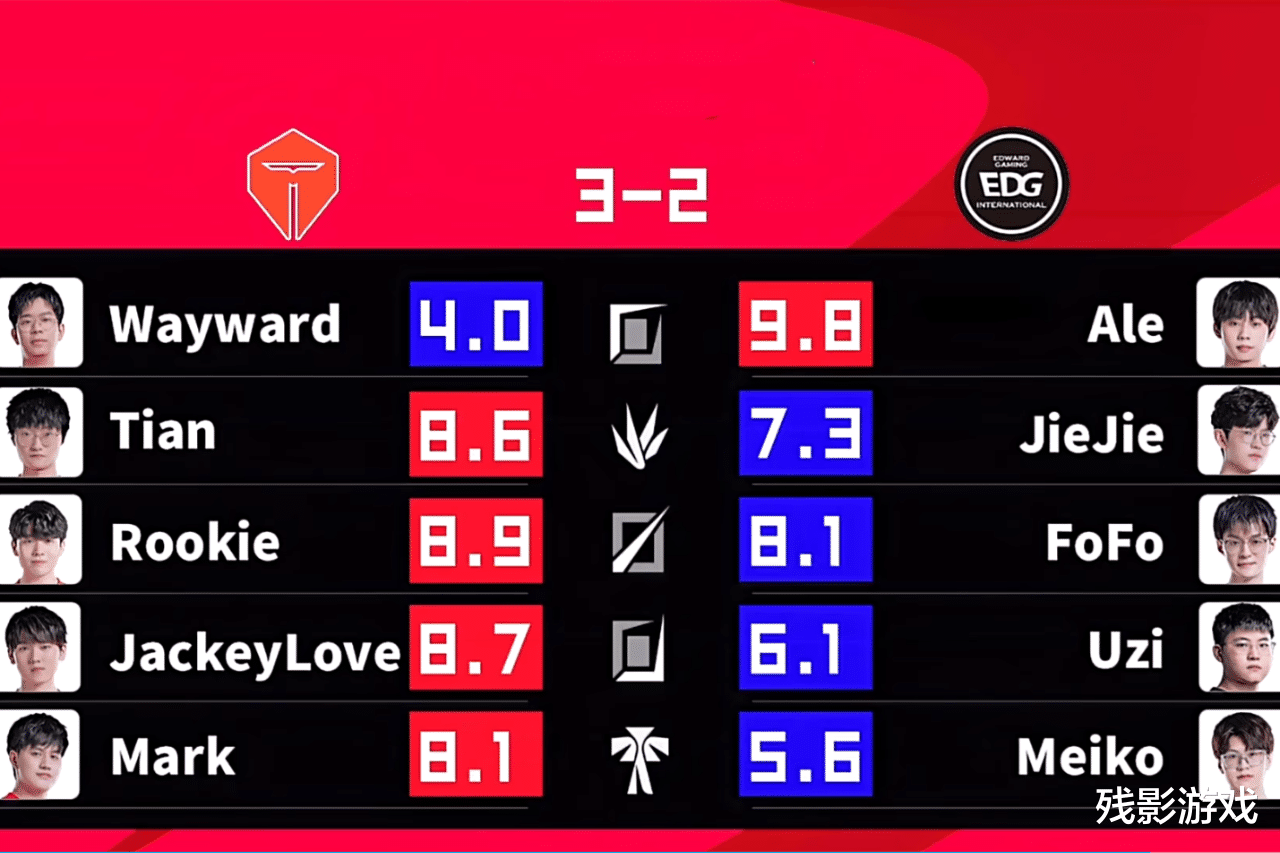 与Able的丝滑厄斐琉斯相比,Uzi玩不出那种灵性,就跟别人的女警、薇恩玩不出他那种感觉一样。其实没办法,JKL已经不是那个初出茅庐的新人AD,但Uzi却已经是26岁的大龄复出AD,两人一个在走下坡路,一个却仍在强势期,正如饭堂所给出的选手评分,Uzi的评分确实是垮了,而阿乐的表现也确实是尽力了。对于EDG而言,下路不该是四保一的存在,平常心对待是最好的。