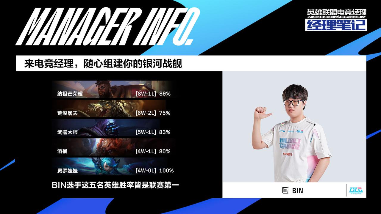 Bin选手奎桑提、雷克顿、贾克斯、古拉加斯、格温胜率皆是本赛季联赛第一
