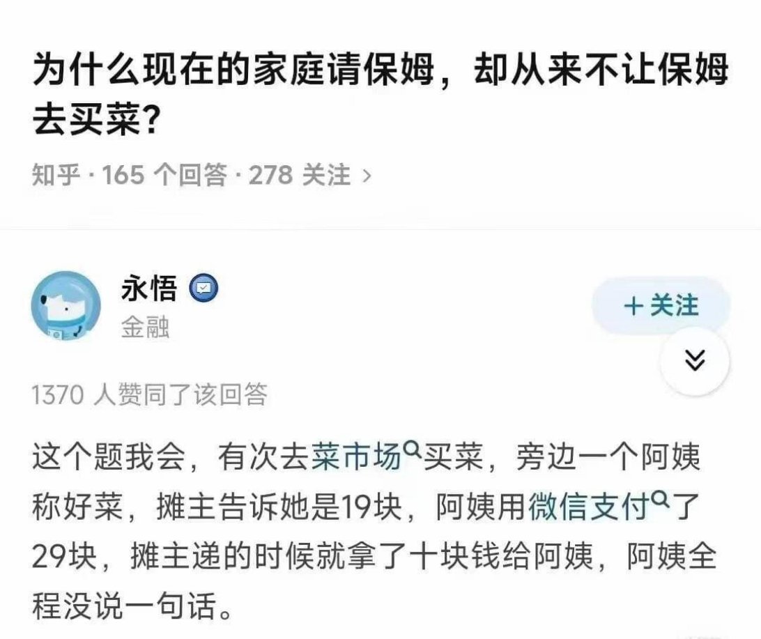 为什么现在的家庭请保姆,却从来不让保姆去买菜?