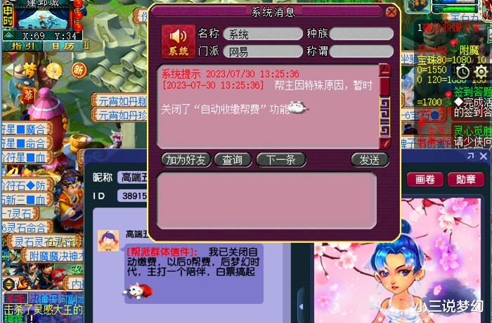 梦幻西游最好帮主,取消帮费关闭自动收取,主打的是情怀陪伴