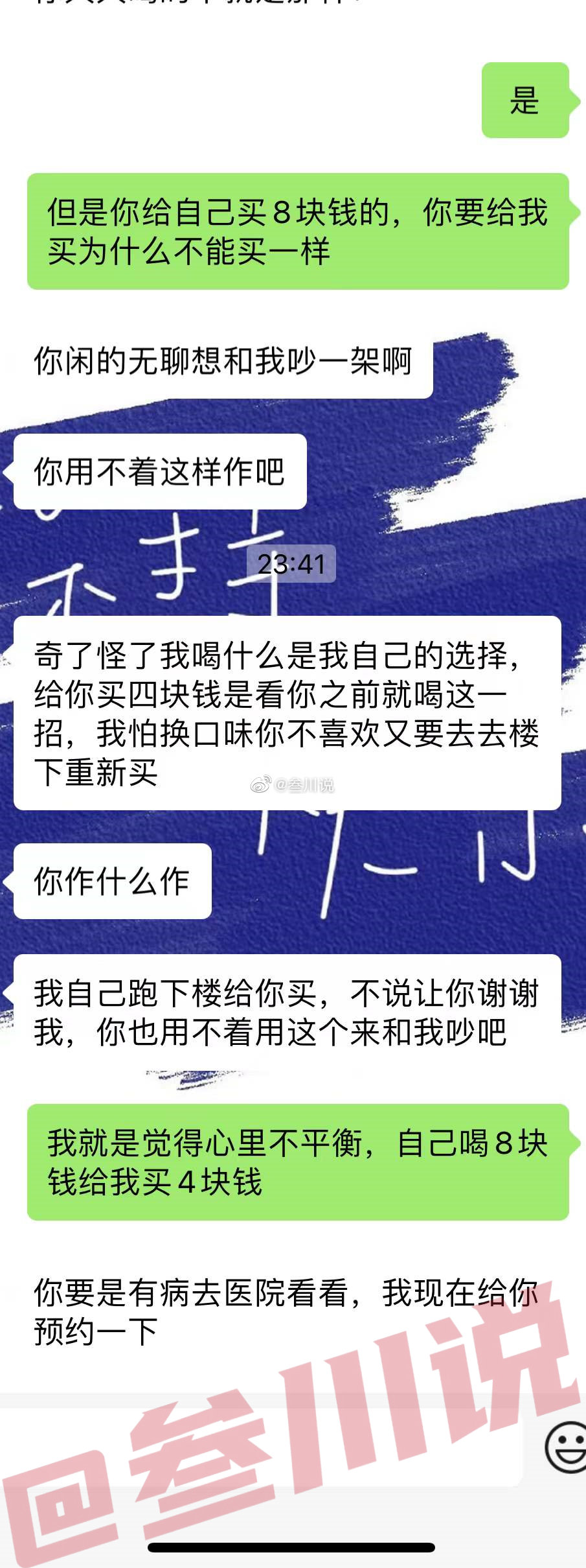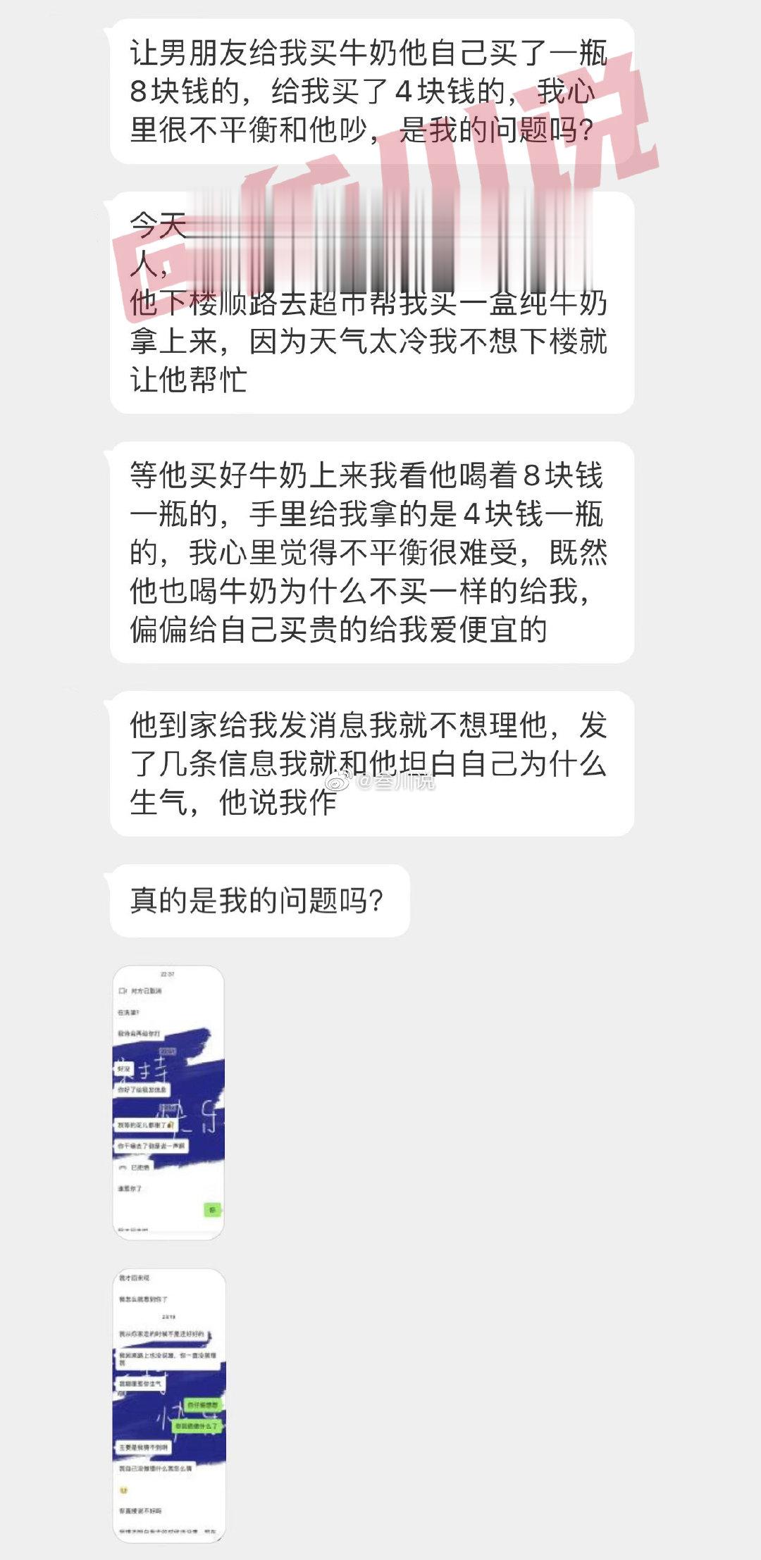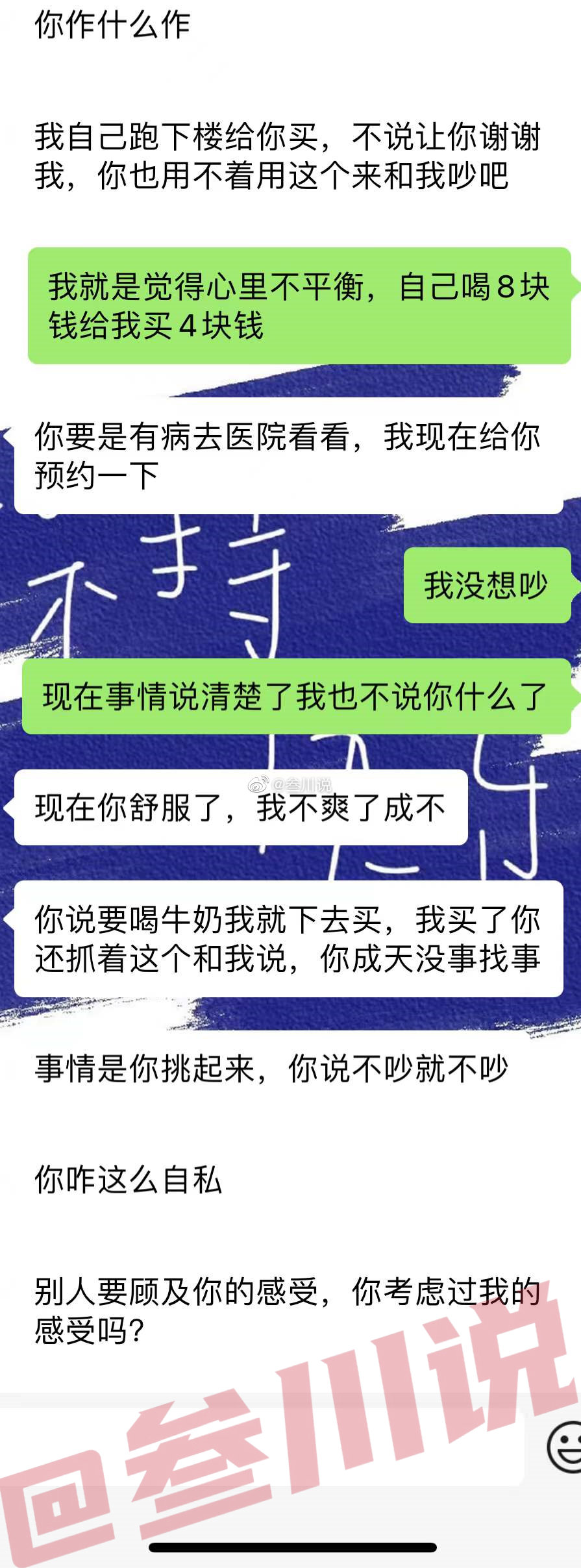 男朋友给我买4块钱的牛奶,自己喝8块钱的,我心里觉得不平衡和他说了,他说我作,是我的问题吗?