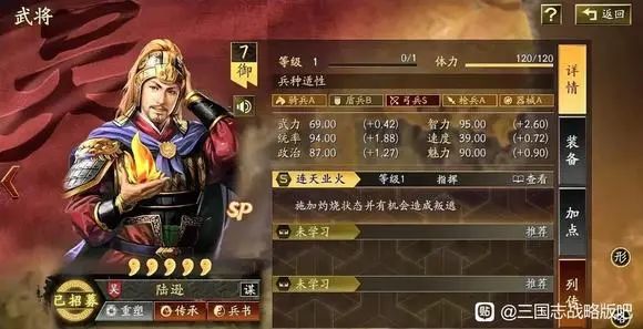 吕蒙弓兵适性A→S。SP吕蒙弓兵适性A→S,成长统率2.07→2.27