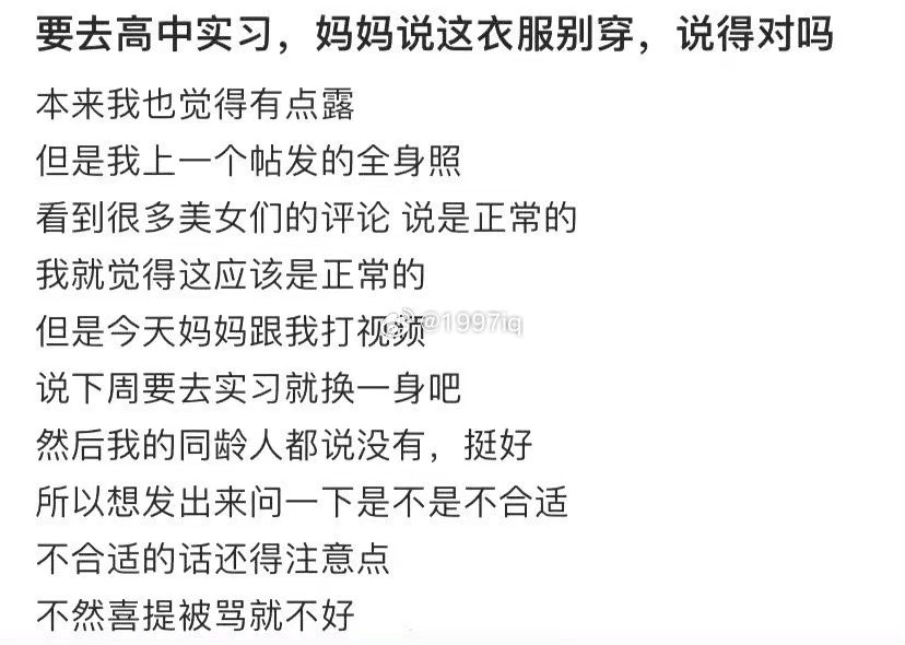 去高中实习 妈妈叫我别这样穿