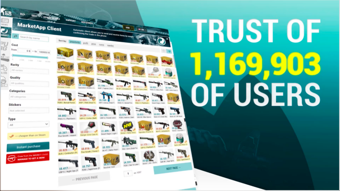 玩家对新平台的诸多顾虑之一就是市场广度是否够大。如果CSGObuy只是始于国内、终于国内,饰品仅限于国内玩家之间的流通,相信玩家的乐趣将大打折扣,收益也大幅折损。之所以好奇和向往,就是期望CSGObuy能带领玩家进入国际市场,体验除网易buff、IGXE、C5game国内3大巨头以外的空间收益与乐趣。