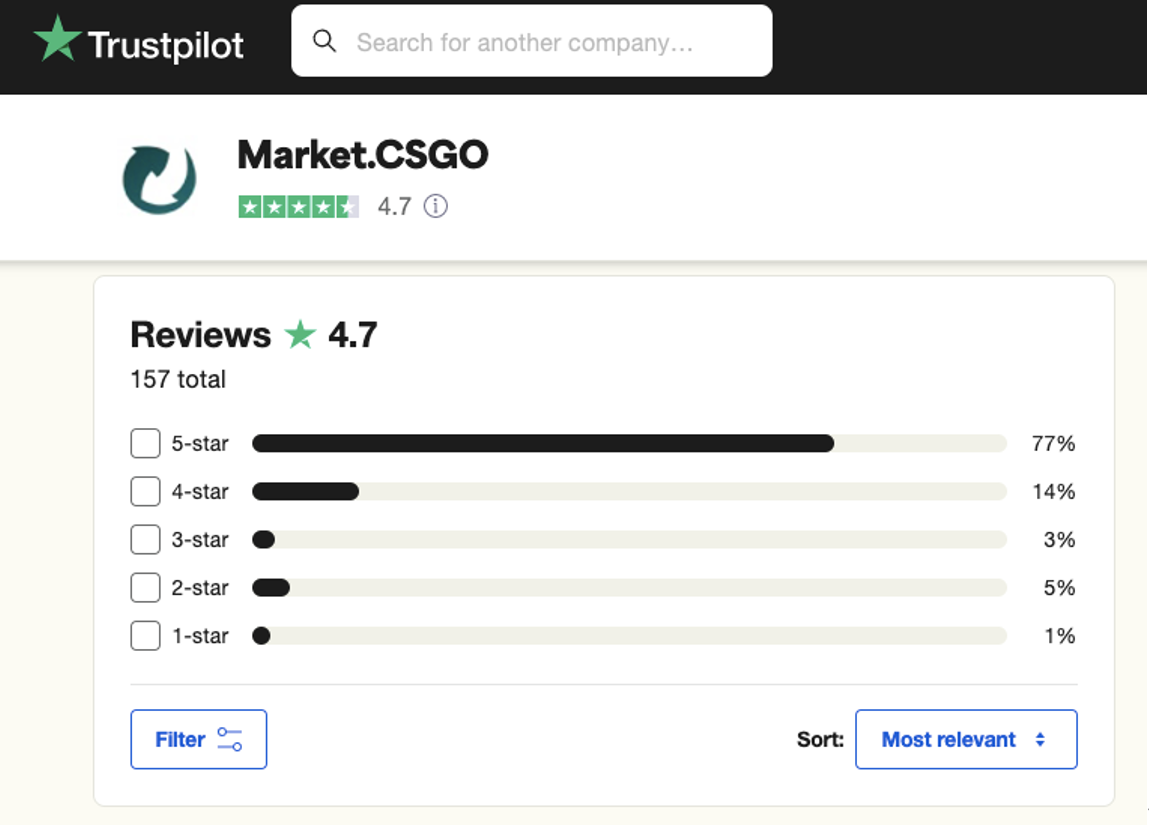 “CSGObuy饰品交易平台”专注于为国内CSGO游戏玩家提供CSGO的饰品购买和出售业务,它的海外站作为老牌的饰品交易平台,成立于2013年,在全球通过了CSGOSKINS_GG和SteamAnalyst等第三方信誉平台的审查,权威性受保障。作为全球闻名的饰品交易平台,早前已在北欧等地区风靡了9个年头,月活跃度超过200万,在csmarketcap上可以看到本周的交易额是389万美刀(折合人民币2700多万元),位居第一,在欧洲用户评论平台Trustpilot上好评度更是高达4.7分(满分5星)。