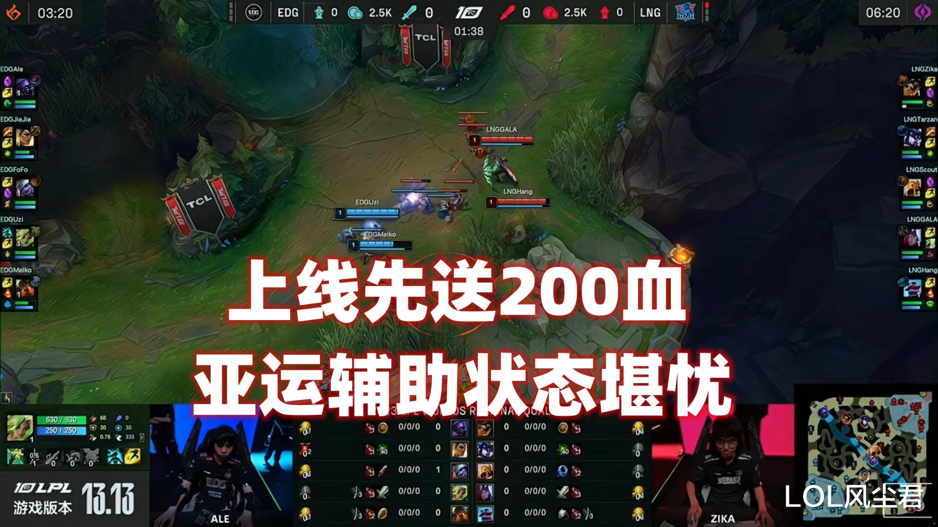 下路双人组的发挥,在这场BO5可以用“灾难”来形容,咱们先说Meiko,对线期的表现和以往反差很大,从辅助选手的实力上来说,Hang和Meiko是差一个等级的,但对战LNG这场比赛,Meiko玩任何英雄,上线都会先送上200点血,导致后续的换血,EDG无法占据优势,如果只是一局还能说状态不好。