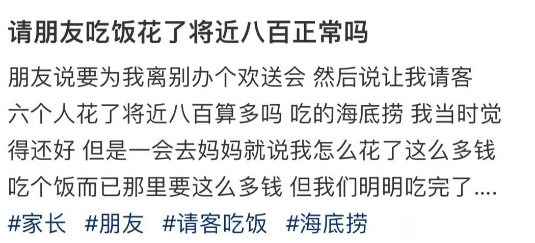 请朋友吃饭花了将近八百正常吗