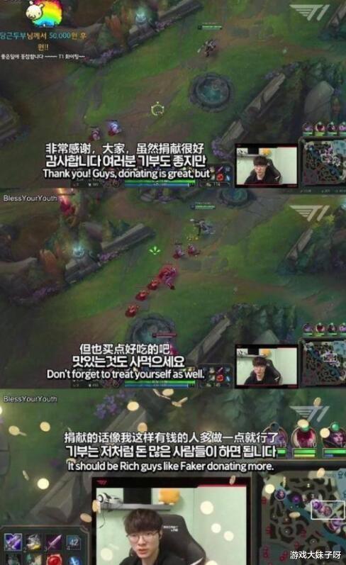 而最近Faker也点评了慈善事业,可能是节奏太大了,faker也有自己的看法,他直言穷人管好自己就行,并且让有钱人去捐款,当时他的原话是:虽然捐献很好,但是还是买点吃的吧,捐献的话像我这样的有钱人多做一点就行。