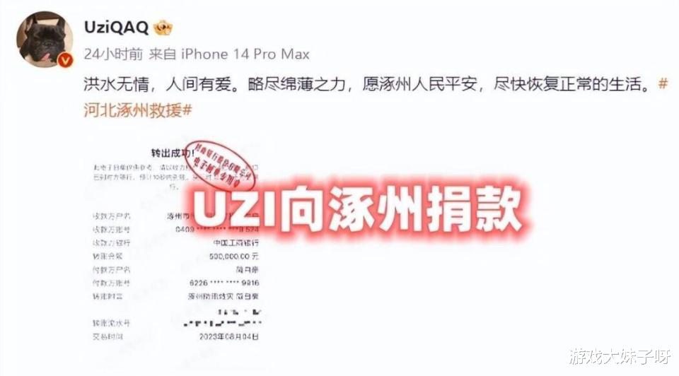 除了比赛的内容之外,我们看到比赛之外也有一些消息,比如最近因为河北涿州发生了很严重的水灾,大家也是心系灾区,最近很多爱心人士纷纷为灾区捐款,电竞圈的选手们也是陆续有人捐款。