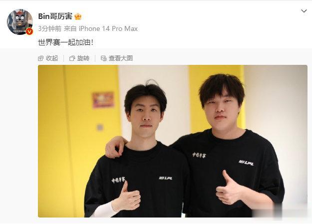 @Bin哥厉害:世界赛一起加油!哇,彬哥和shy哥!!
