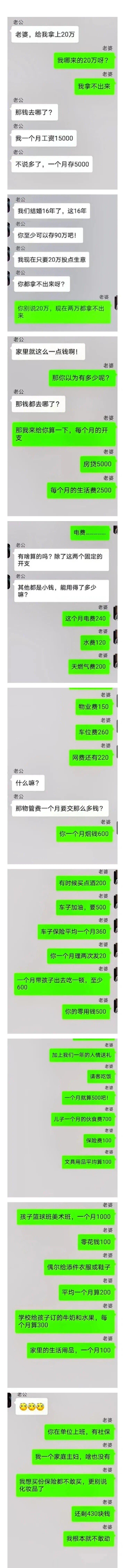 一对夫妻的聊天对话瞬间火了,让人心酸又无奈