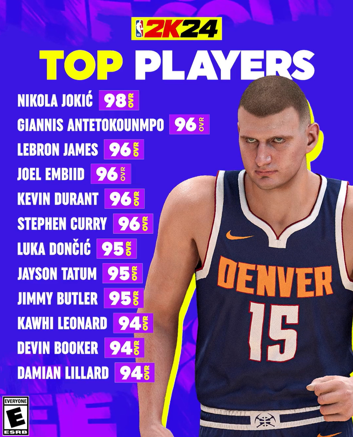 直播吧8月10日讯2K今日官方公布了2k24Top12球员的能力值。