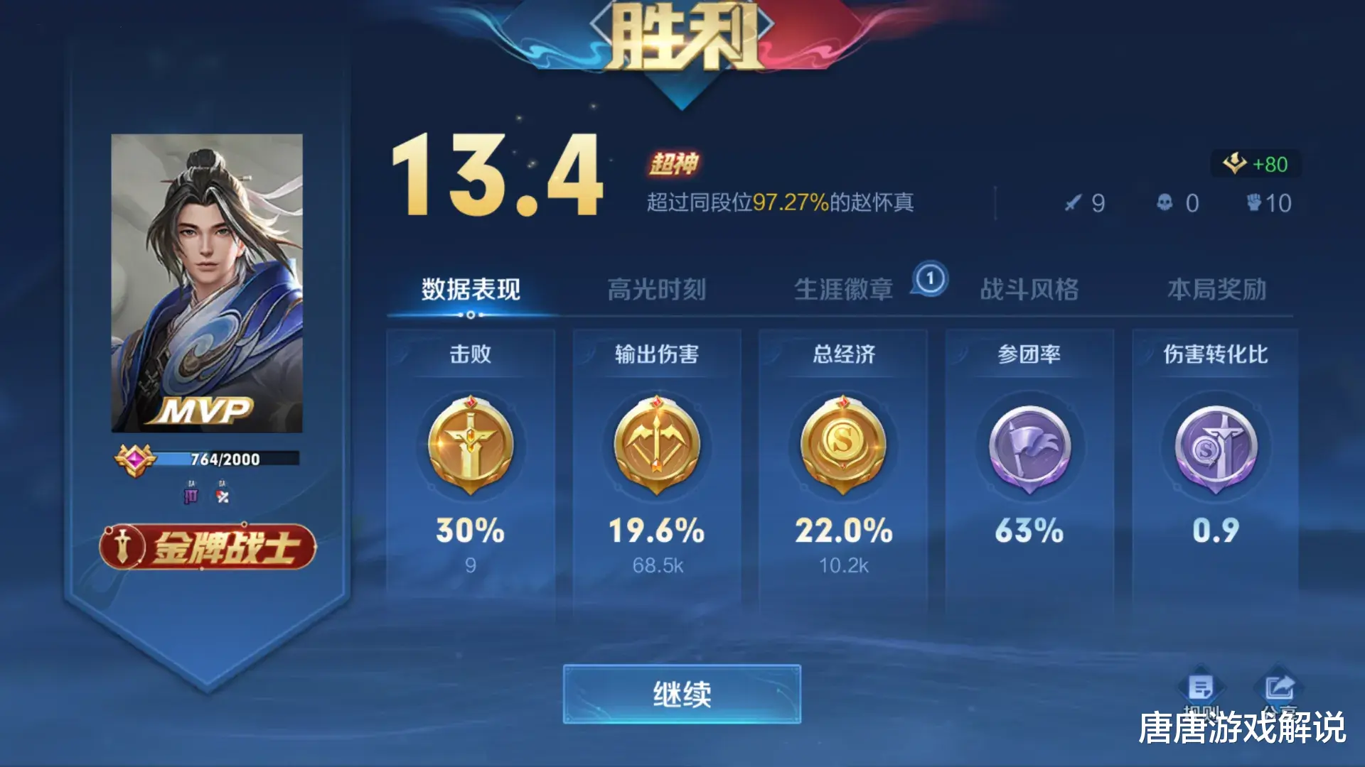 在经过技能和普攻伤害强度平衡之后,赵怀真的胜率出现了明显的下滑,稳定保持在53%左右的数值,看起来似乎并不出众。
