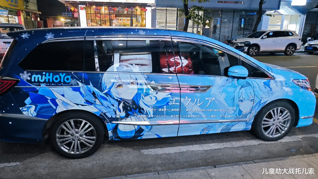 不过比起原神官方的大手笔,原神玩家们在现场也是犹如八仙过海,各显神通。还未进门大家就发现了门口停着一辆夜兰的痛车,这是比亚比秦系列,车身贴着夜兰的立绘,还有同人图,同为蓝色系的车身和图案尤为抢眼。