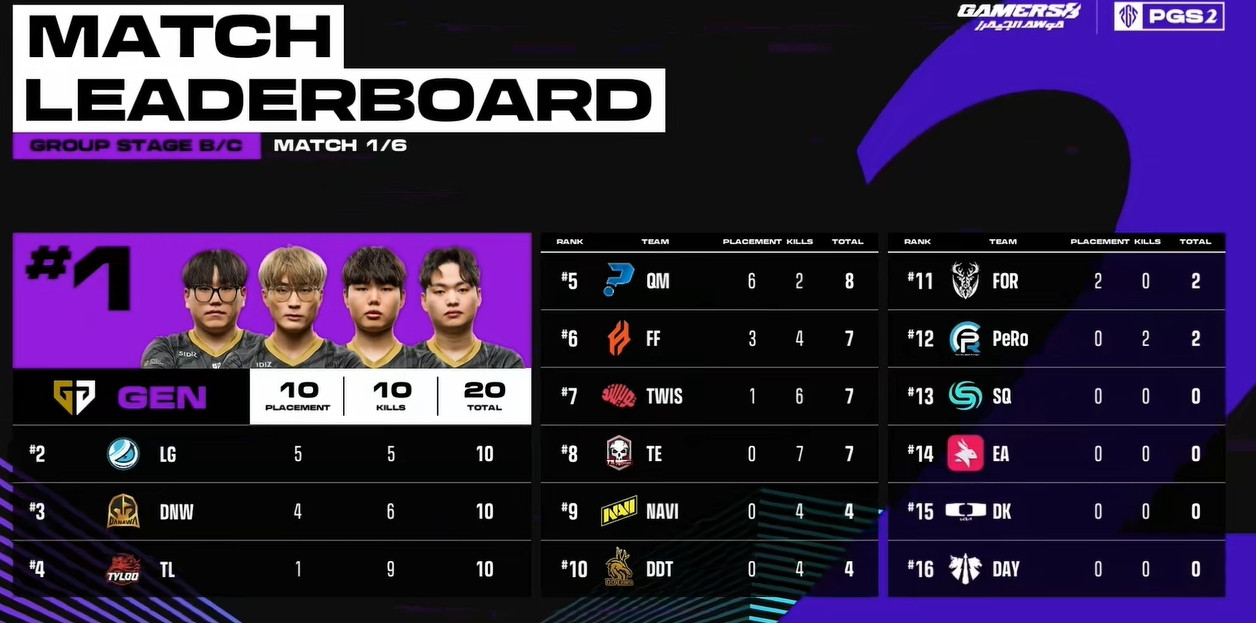七圈场上还剩六队19生存。DNW直接进攻LG房区,双方形成人数互换。另一边FOR先被淘汰。后续作战,pio连续击倒FF两人。梅花桩刷新,多队混战下FF先被带走。DNW,LG随后也被带走。四打二!GENG轻松淘汰QM,成功吃鸡!
